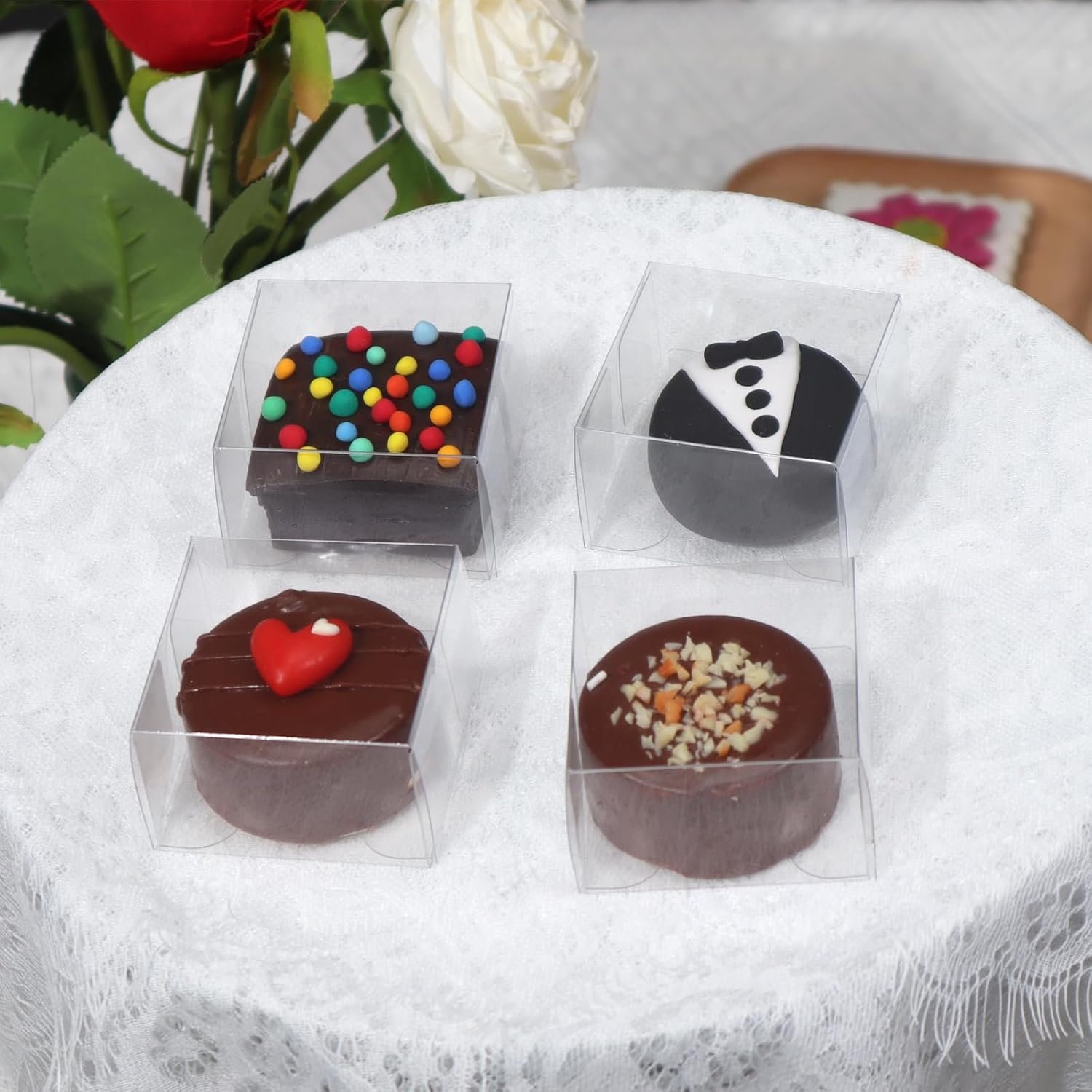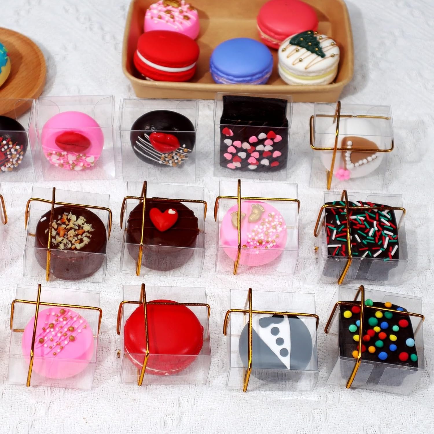 Das durchsichtige Design ermöglicht es, die köstlichen Kreationen im Inneren leicht zu sehen, wodurch ein verlockender Anreiz für Ihre Kunden geschaffen wird. Diese Boxen sind nicht nur perfekt für Macarons, sondern eignen sich auch ausgezeichnet für: